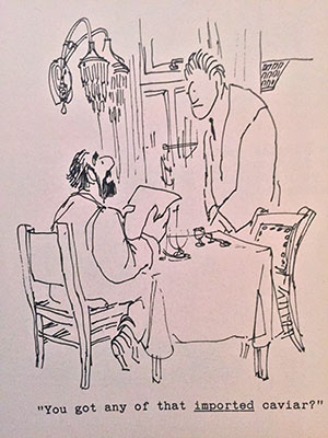 The features often showed photographs of Silverstein at work, sketching scenes whilst being watched by locals, tourists and the odd Soviet policeman! Accompanying the sketches were harmless, humorous digs at the country and its people as well as Americans and especially American tourists. Silverstein quickly understood the place he was visiting and the locals perceptions about Americans and wasn’t afraid to show it and often used his own self-portraits as the butt of the joke. The cartoons were eventually published in one volume in 2007 called ‘Silverstein Around the World’