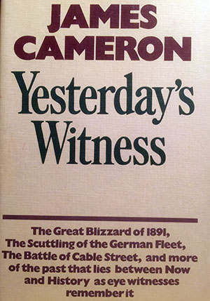 By the time the BBC published Yesterday’s Witness by James Cameron in 1979, the television series of the same name and collaboration between said author and corporation had already run to more than seventy episodes. Such was the quality of this intriguing insight into recent history that the BBC allowed Cameron to act as an editor of sorts to produce a marvellous ‘taster’ for those of us now wishing to find episodes online.