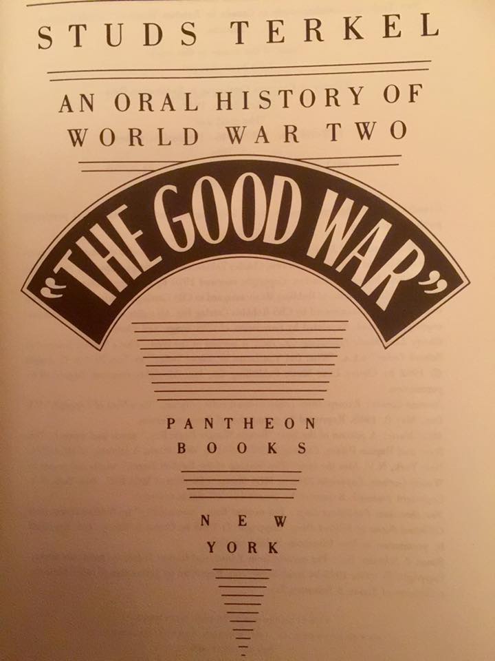 In 1985 Terkel won the Pulitzer Prize for The Good War: An Oral History of World War Two. It is a stunning book which captures the memories of those Americans who experienced the events as they unfolded both directly in combat and at home in the relative safety of the United States.