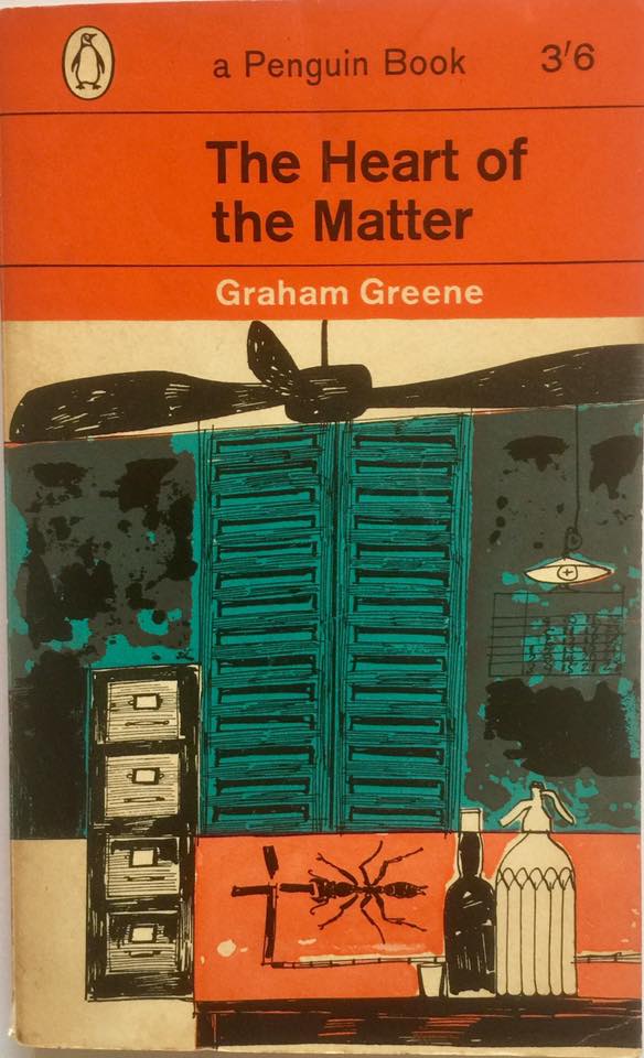 My final choice for this post (more to follow) is another classic in both book content and cover. The Heart of the Matter (Penguin 1962) is set in the then British colony of Sierra Leone during the second world war. Greene’s depiction of colonial life is complete; the heat, the squalor, racial tension and drink-fuelled affairs, it’s all there. In Hogarth’s cover we find the essential elements of military intelligence in its most basic; ceiling fan, bottle of spirits, soda syphon, filing cabinet and closed window shutters to block out the bright sun. I have previously reviewed the film version from 1953, a decent effort if one hasn’t read the book, critically falling short in key areas if you have.