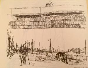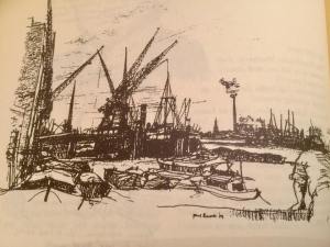 Hogarth’s style is unmistakable, he draws both caricatures and landscapes with the same freestyle pencil or pen movements, they are obviously drawings of a bygone era but it is the style of the drawing itself which makes the reader all the more nostalgic. Imagine seeing his reportage drawings in the newspaper during the Cold War? That window into another world that must have seemed so distant for so many in the United Kingdom who were slowly emerging from the bleak fog of World War Two. Consider also, the often trying circumstances under which he must have had to work, not for him the comfort of a long range telephoto lens. He had to engage with the subject, sit, watch and listen. How often do we, upon looking at an image question the circumstance in which it was captured?