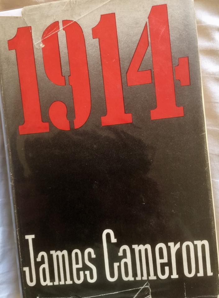 In 1959 the British journalist James Cameron published his third book and one which saw a departure of sorts from his reportage work. I say of sorts because whilst the subject of his book was the First World War he wrote it very much in keeping with the style of journalistic writing he had become so well known for. The book, 1914, was published by Cassell & Company Ltd of London featuring a stark cover of red and white lettering on a gun metal background.
