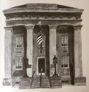 The buildings are many and a glorious reminder of Philadelphia’s past history. Their government halls are well represented! From Independence Hall to Congress Hall to Carpenters’ Hall and Old City Hall, Hogarth captures them all as he walks and paints his way through Independence Park and the scene of the first Continental Congress through to Independence Square.