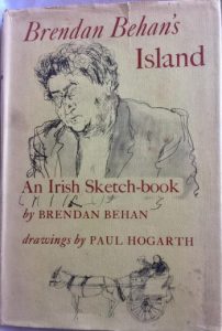 In his excellent autobiography Drawing on Life Hogarth recalled the difficulty in keeping Behan out of a pub long enough to drive anywhere and achieve anything in the creation of the book. Whilst Hogarth admired Behan’s authority on the history and folklore of Ireland, including the history of the Irish Republican Army, he despaired of Behan’s drinking sessions to the point he wrote of his relief to leave Behan and his wife in order to make drawings in other parts of the country.