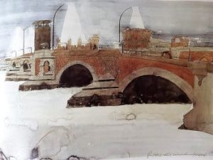 Take his painting of the Oberbaum Bridge in Kreuzberg, Berlin from 1981. Now ensconced in the Imperial War Museum, London, Hogarth describes in the book how it featured prominently in John Le Carré’s novel Smiley’s People. Hogarth was long on the political left and he began painting life in Poland and Czechoslovakia in the 1950s before venturing to the Soviet Union and China.