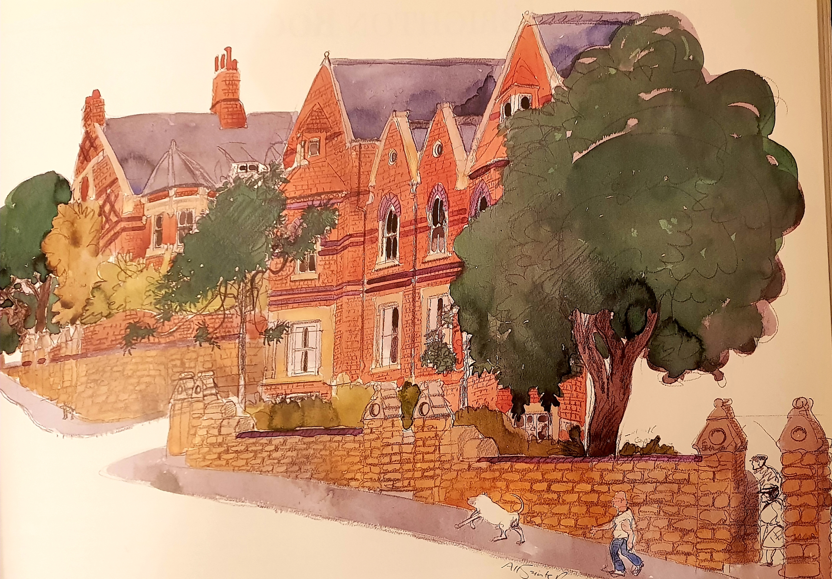 This theme of a lost childhood continued in his next novel, Brighton Rock and in many ways A Gun for Sale is the ideal precursor to this classic, if you haven’t already read Brighton Rock then begin with this before immersing yourself in one of the great novels of the last century. Greene based his novel on his recollections of living and working in Nottingham in the 1920s, calling the town “Nottwich”, he uses his former address in All Saints Road as the home for Anne, saying later that “I always find it easier to remember than imagine”. Opposite is Paul Hogarth’s painting of All Saints Road from his collaboration with Greene called Graham Greene Country. Like Greene, Hogarth was taken with the neo-Gothic houses which influenced the author in creating his backdrop, and as so often with Greene, it is his own personal memories which shape the characters and the storylines and his time in Nottingham gave him enough material to give this dark thriller the setting it needed.