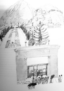 They began their journey in Moscow, they visited the GOUM department store where Hogarth fell in love with the restaurant and the Victorian French décor which he sketched whilst waiting for his food, a Chicken à la Kiev which shot garlic butter in his eye and beard as soon as he cut into it! Food and drink anecdotes feature throughout Hogarth’s books and really add to the sense of time and place, they also make one nostalgic for dishes long lost on restaurant menus such as a proper ‘beef stroganov’ which Jacob ordered for eight shillings and pronounced very good value for money.