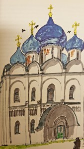 The journey was far-reaching, Hogarth had a month in which to produce at least seventy paintings and the book covers their excursions to Kiev, Suzdal, Lenningrad, Bukhara and Samarkand. The Russian railway service leaves much to be desired as they try in vain for a morning trip to Suzdal where they are told there is but one train a day despite being on the main line to Gorki, a city of a million inhabitants. They were clearly being lied to and the men vented their spleen accordingly.