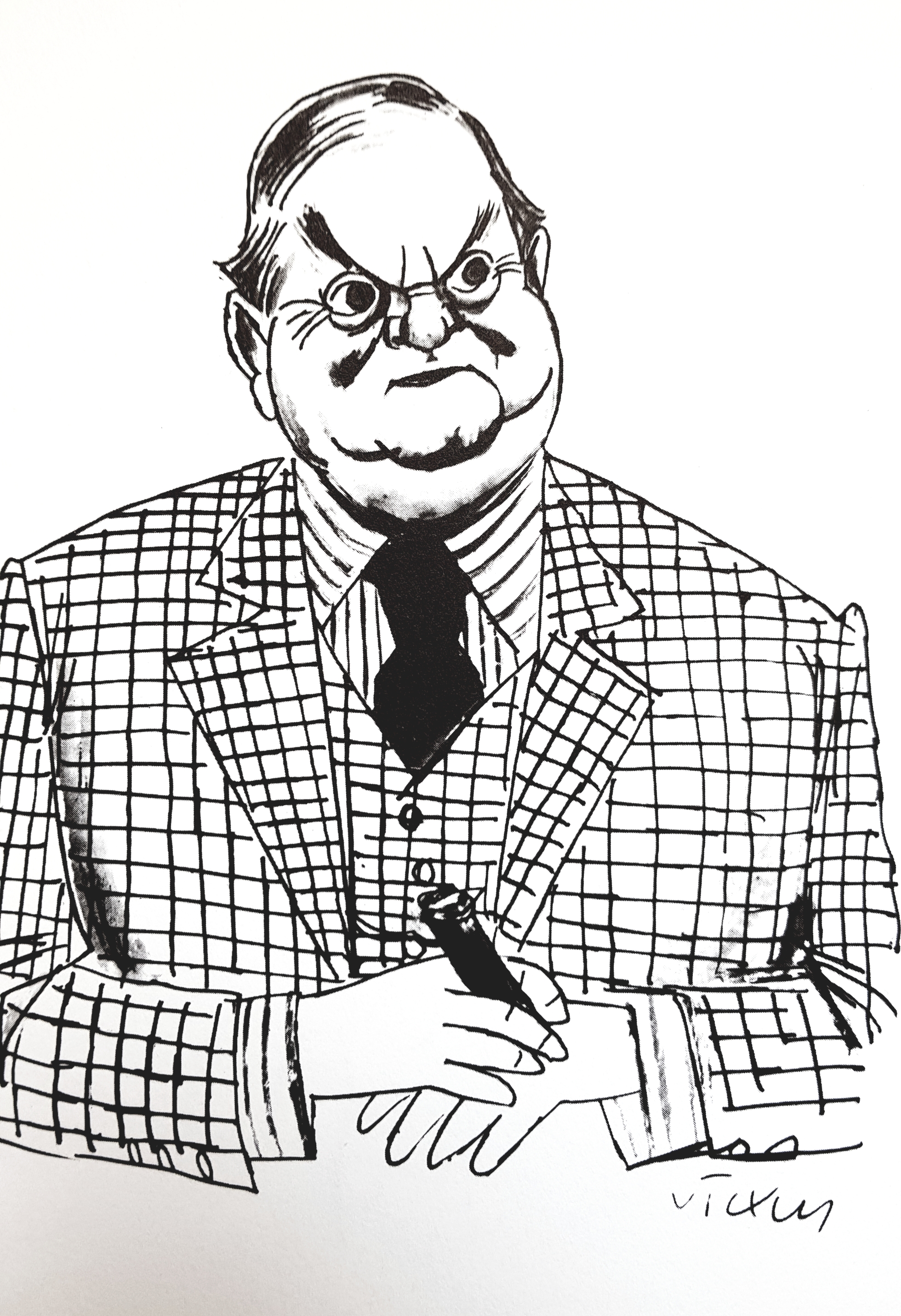 Victor ‘Vicky’ Weisz was one of the great political satirists of the mid twentieth century. His cartoons graced the pages of the Daily Mirror, Evening Standard and News Chronicle from 1935 when he first came to England as a refugee until his tragic death in 1966. Leaving Germany as Hitler and the Nazi party’s prominence grew stronger he took with him his socialist hatred of the regime having openly criticized it through his drawings in the journal 12 Unter Blatt until it was taken over by the Nazis. Born in Berlin in 1913 to Hungarian-Jewish parents Vicky had begun drawing political cartoons following the suicide of his father in 1928 in what would prove to be a tragic precursor to his own death.