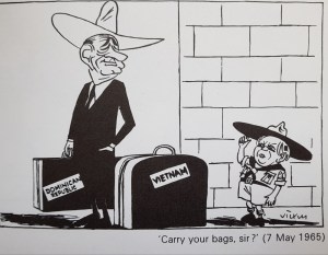 His run at Macmillan had to end eventually and as Labour welcomed in their new Prime Minister, Harold Wilson so Vicky set about creating his caricature as a Boy Scout running bob a job errands for the American president. Despite his loathing for America’s involvement in Vietnam and Britain’s refusal to denounce it, Vicky did not despise America but he felt let down by both countries and in particular the Wilson Labour government whom he trusted to take a stance. A year before he died he had become anxious about his ideas drying up and a battle with depression soon took hold until on the 23rd February 1966 he was found dead of an overdose of sleeping tablets.