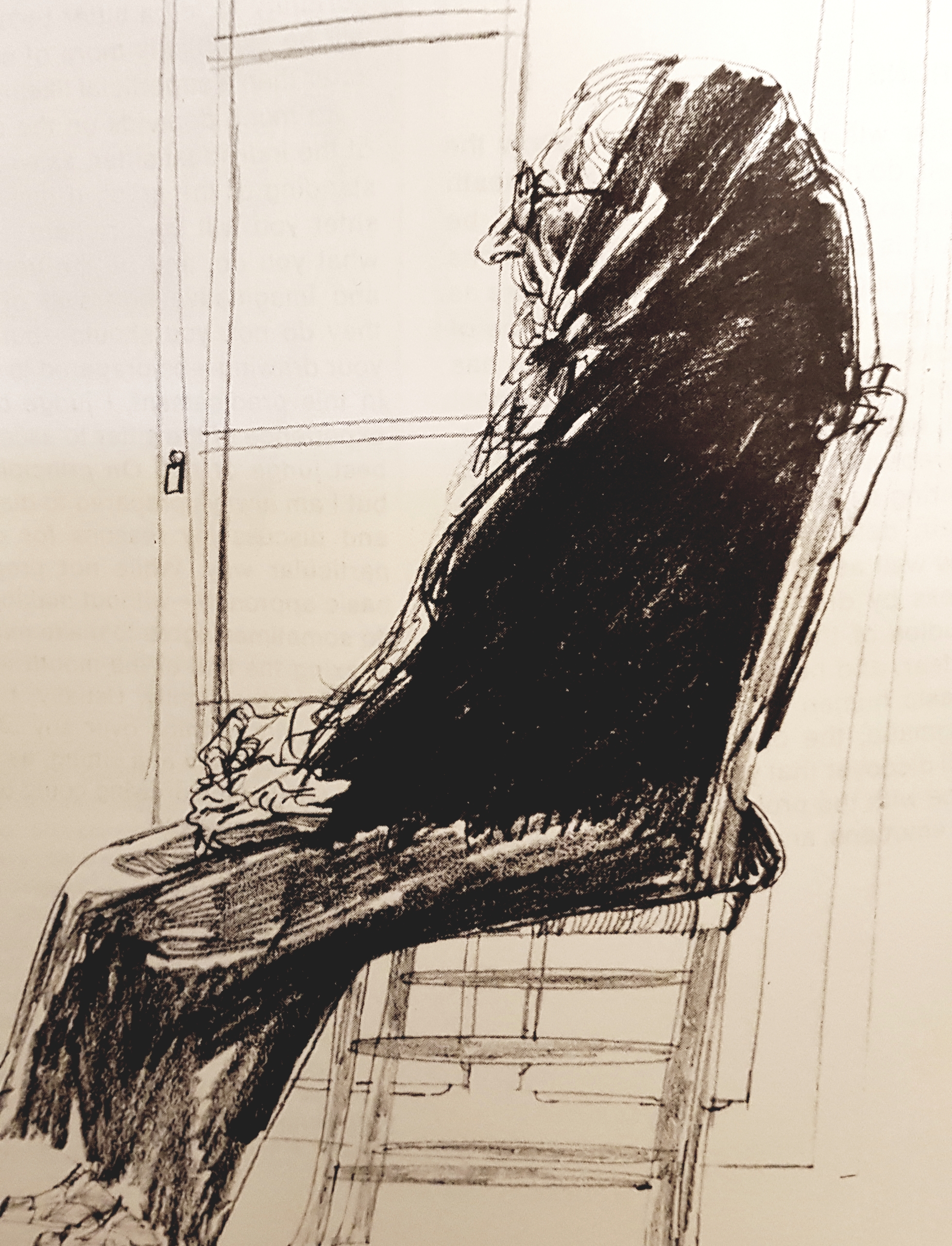 Each chapter concentrates on a singular aspect to drawing people, from the pens and paper he used to tips on how to feel comfortable drawing portraits in varying situations. He gives interesting anecdotes to his work, such as this, opposite, of the Irish author Brendan Behan with whom he collaborated on two books; Brendan Behan’s New York and Brendan Behan’s Island. Hogarth drew this at Behan’s cottage in Connemara and recalled: ‘Brendan was not the best of sitters, but the after effects of our feast of lobsters and champagne calmed his restless spirit’ Behan’s drinking was the stuff of legend which made Hogarth’s work all the more ‘interesting’ to complete in his presence.