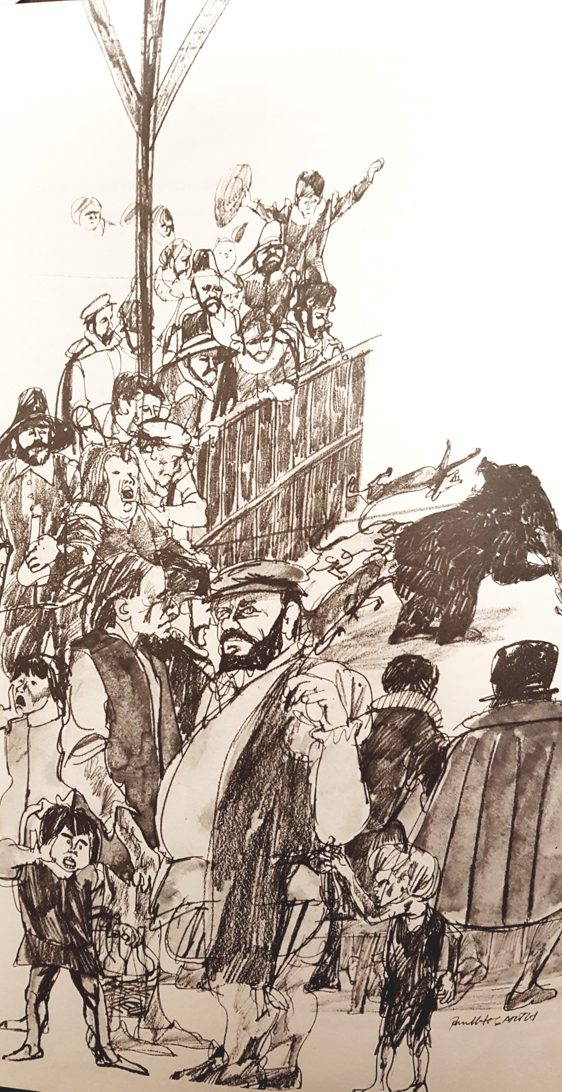 The artist Paul Hogarth (1917-2001) was a prolific author and this, his thirteenth title first published in 1971 was his third ‘how to’ educational book. By the onset of the 1970s Hogarth was a well-established artist who had found fame through his original pieces in Cold War Europe, China, Russia and America as well as South Africa. He had a unique style which captured times and places in a way a photograph cannot. He drew predominantly on location, often in a crowd but seldom perturbed.