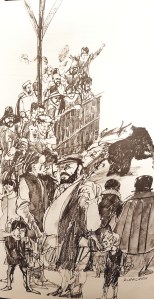 Crowd scenes came easily to Hogarth, he describes taking two friends along to the legendary London nightclub Annabel’s to sandwich him in whilst he sneakily sketched a bar scene. The book contains a useful chapter on getting the best from a multi-person scene and he describes being in Warsaw in 1956 as the Polish took to the streets in solidarity with their fellow suffering Hungarian neighbours during Khrushchev’s post-Stalin reign.