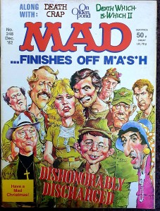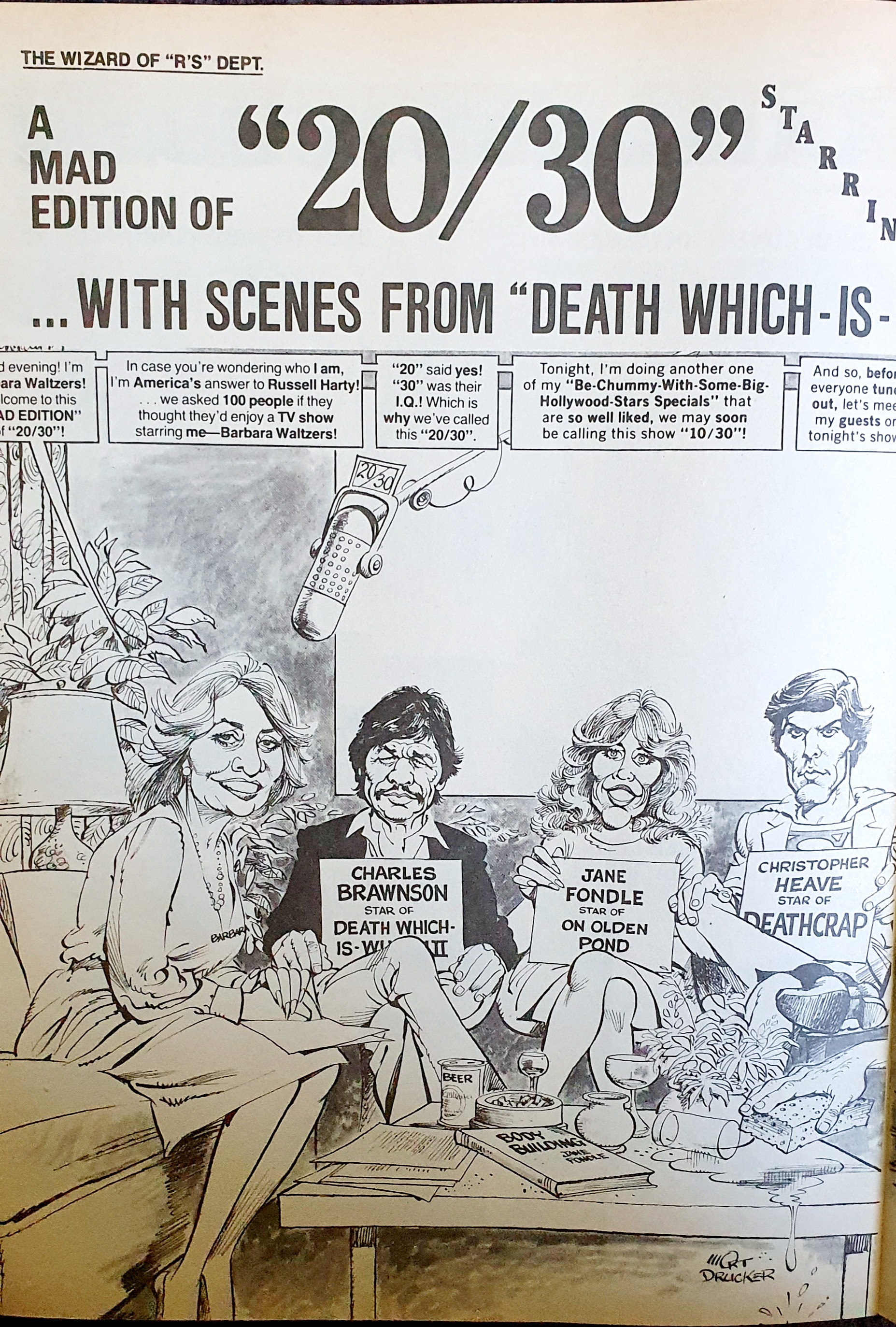 What followed was a wonderful relationship with the magazine and some of its finest work. Drucker had an incredible eye for detail and comedic characterisation, his movie parodies were glorious and his classic cover for the M*A*S*H edition opposite is testament to his ability.