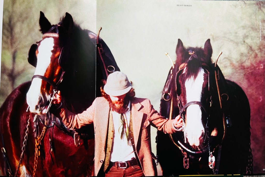 ‘Heavy Horses, move the land under me. Behind the plough guiding, slipping and sliding free. Now you’re down to the few and there’s no work to do; the tractor’s on its way’