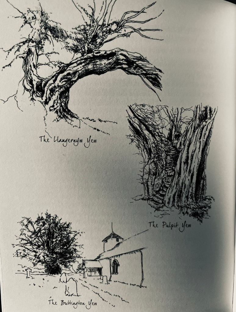 The illustrations capture their unique beauty, powerful multi layered trunks with poisonous foliage used in the treatment of cancer, they grow and contort according to their environment. I am fortunate to live near a grove of ancient yews sat within a Commonwealth war graves site and it is hard to imagine a tree more suitable for the place.