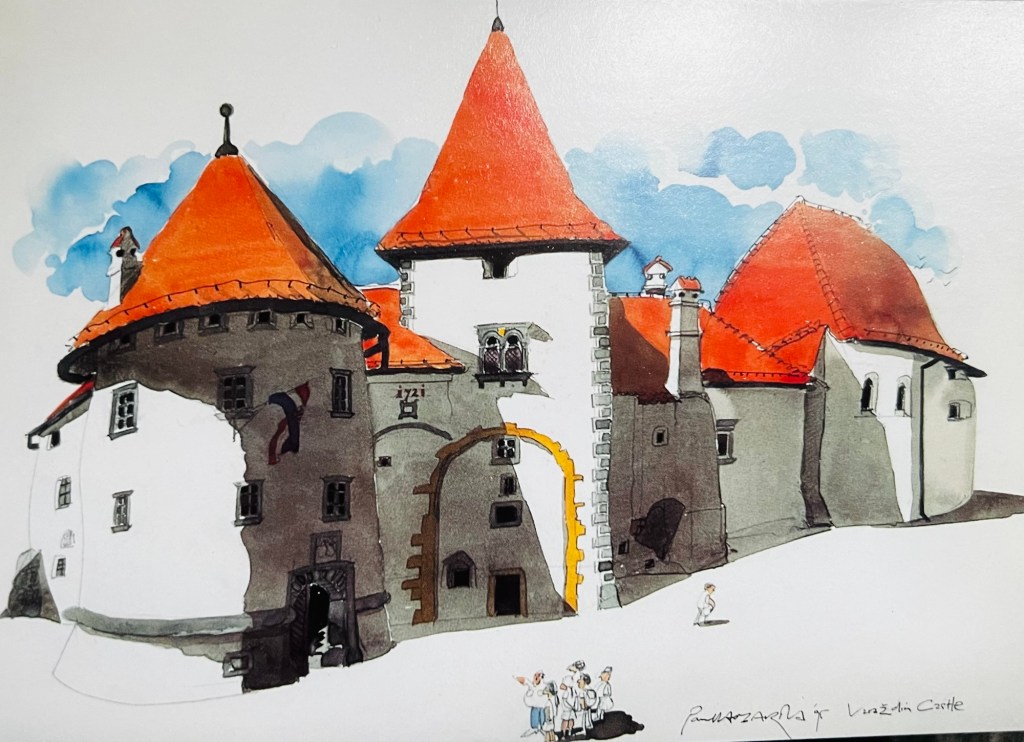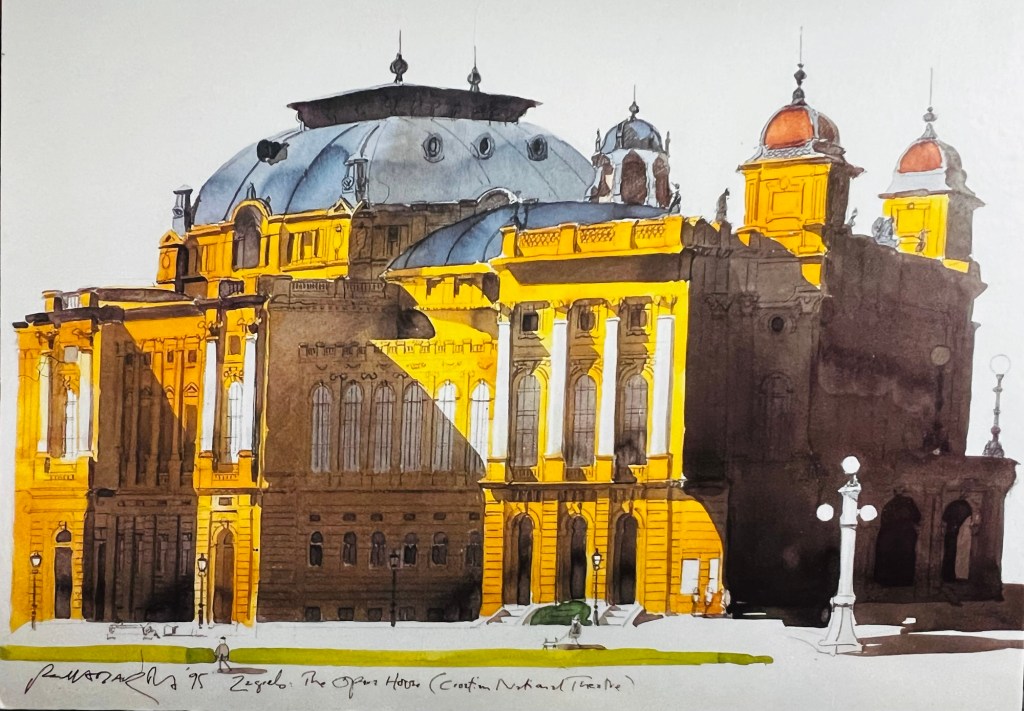 Having donated a piece of his art to a charity auction in aid of restoring war-damaged historic buildings he was then invited by the Croatian government to paint any parts of the country which appealed to him. Arriving in Zagreb in 1995 for the second time in thirty years this was a very different time where earlier in the year it had been under severe missile attack and it’s clear Hogarth felt the danger.