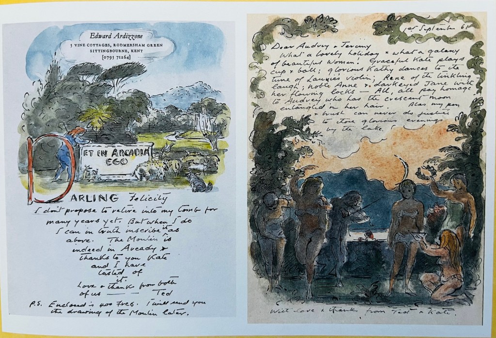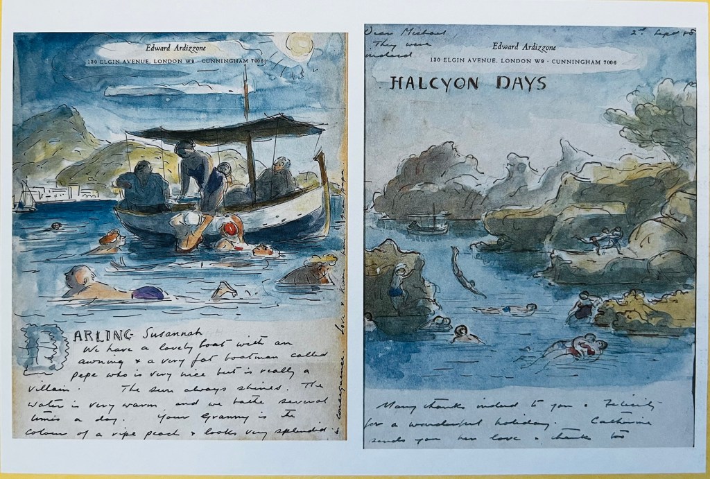 Some of my favourites are from his letters of thanks (in the most part) to his friend Michael Behrens who he met in the 1950s. As the friendship between both families grew, Ardizzone would holiday at Behrens homes in Majorca and the South of France which produced some beautiful, idyllic scenes of life in the sun.