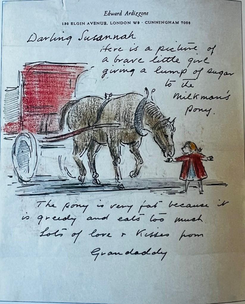 There are many of his letters to his wife, children and grandchildren, including the charming picture above of his granddaughter Susannah giving sugar to a horse.