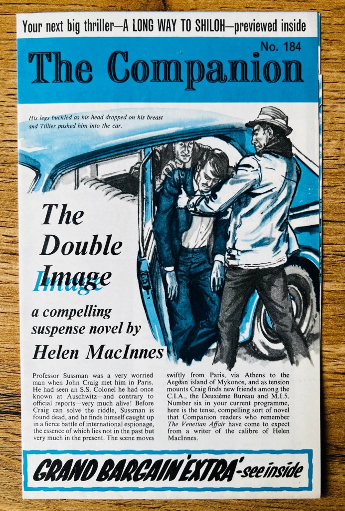 I have just finished reading The Double Image by renowned spy fiction writer Helen MacInnes. First published in 1965, the story begins in Paris when an American, John Craig bumps into his former college professor who says he has just seen a ghost in the form of S.S. Colonel Heinrich Berg, a man the professor has known since childhood.