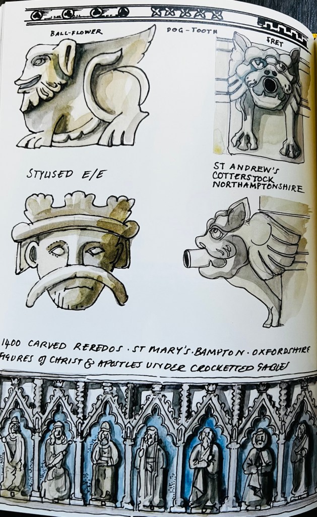 First published in 2013 in small hardback format with textured boards it stems from a series of illustrations and articles commissioned by Country Life magazine and is one of a number of similar books by the author which include Rice’s Language of Buildings, sketchbook guides to Venice, Oxford, Rome and Stoke-on-Trent!