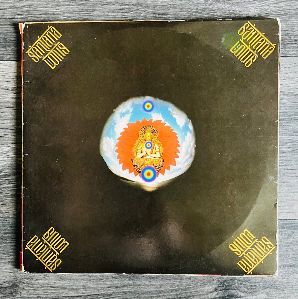 The tri-fold gatefold opens to such a size it becomes very difficult to photograph so imagine my horror at attempting to unfold it on a windy day in the middle of a busy town centre! But it is a milestone in glorious 1970s rock self-indulgence, Carlos Santana was a follower of the Indian guru Sri Chimnoy who could also count John McLaughlin as one of his disciples. So this album is very much a recognition of his spiritual path at that time.