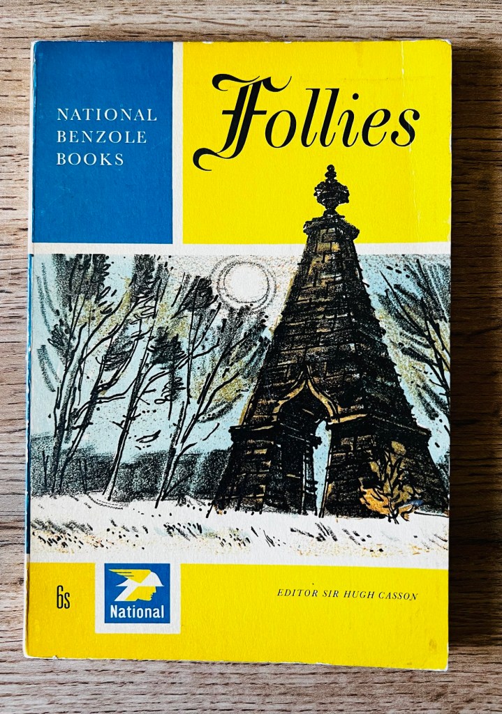 This is the 1963 first edition of Follies, published by Chatto and Windus in association with National Benzole Ltd. This was the first book of the series designed by National Benzole to ‘inspire’ the driver to venture out and explore Britain. Cynics might be forgiven for believing it a ploy to sell more of their petrol but either way they produced a beautiful series of these small books.