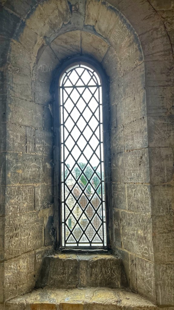 The building sits on farmland which has developed considerably since my last visit, there is some limited parking close by and if, like me, you arrive early then you will likely have the place to yourself. Entering the building I was immediately struck by both the light and the absolute sense of history. The walls, quite literally, spell it out with a huge amount of graffiti spread across all of the walls and the spiral staircase to the first floor. The ‘graffiti’ mercifully, is, for the most part, the older kind, evading the dreaded spray can. Instead, you will find masons marks, names and initials of visiting pilgrims and later, everyday visitors who can be dated from the 1600s and earlier. I intend to write a separate post about these engravings and most especially the abundance of runes or ritual symbols of protection which seems to have either not been understood or ignored.