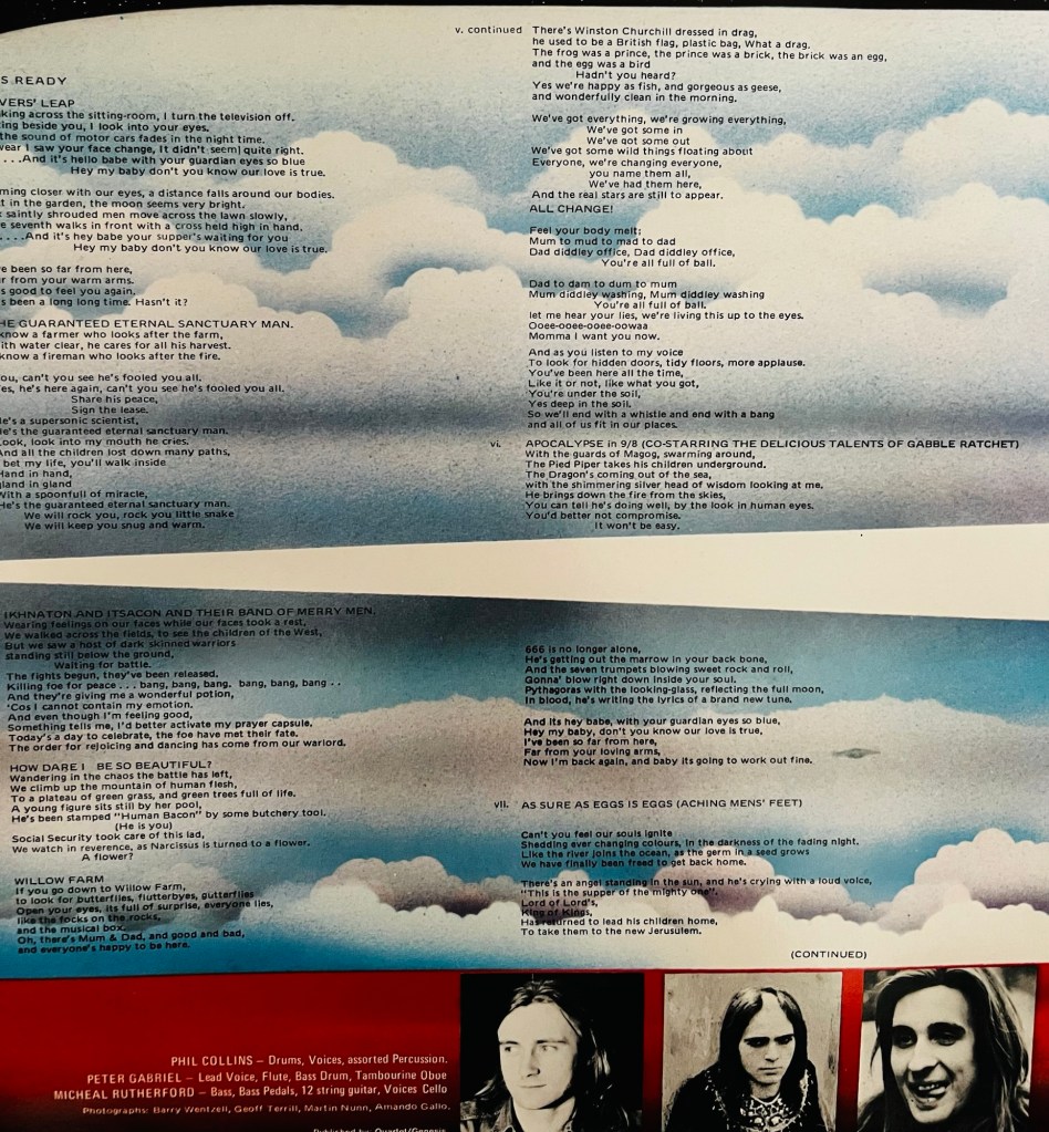On a personal level my favourite album is Selling England by the Pound followed by Nursery Cryme with the latter being my favourite cover design. With Foxtrot and the reason for my choosing it is that the band really did not like the design. Whilst Tony Banks gives you the impression that nothing is ever good enough, the other members thought it the weakest of Whitehead’s designs. He would go on to produce one more cover for the band, Genesis Live which was the letter writing only, the writing was on the wall!!
