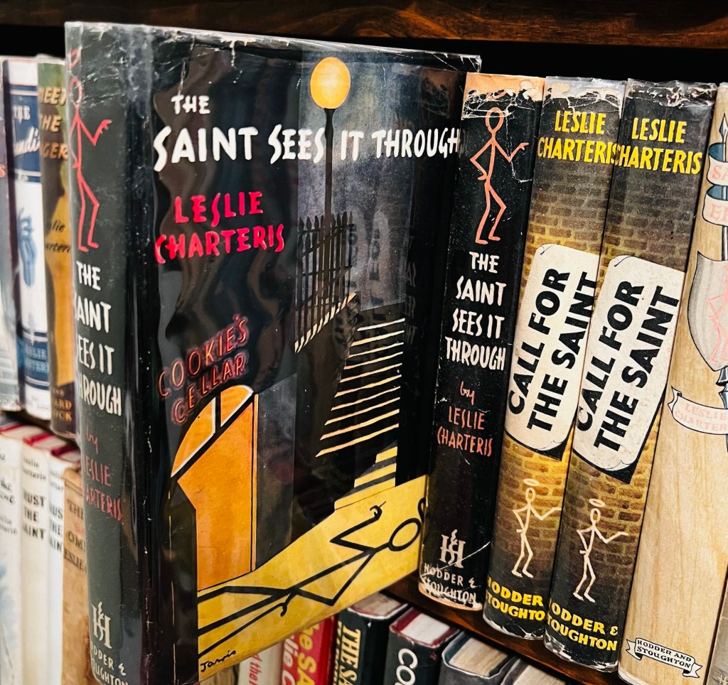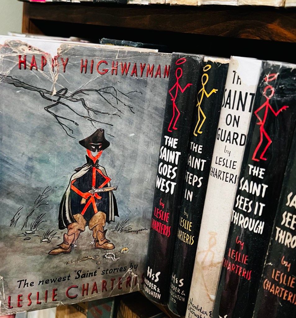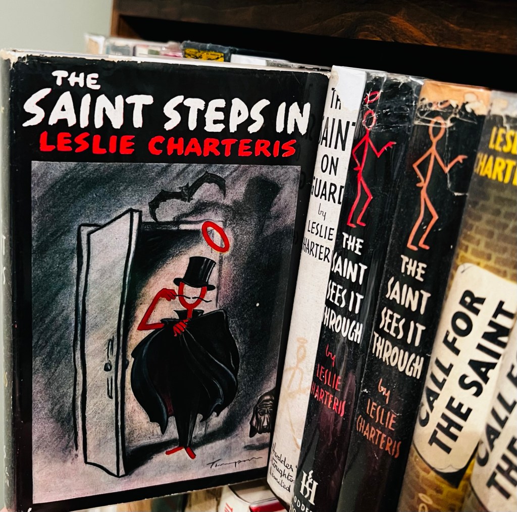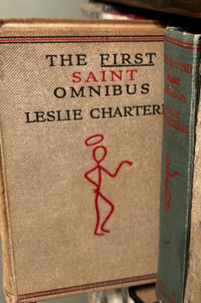 Below is The First Saint Omnibus first edition from 1939, a collection of stories taken from Enter the Saint, Featuring the Saint, Alias the Saint, Follow the Saint, The Ace of Knaves, The Saint Goes On, Boodle, The Misfortunes of Mr Teal, Once More The Saint, The Holy Terror and The Brighter Buccaneer.