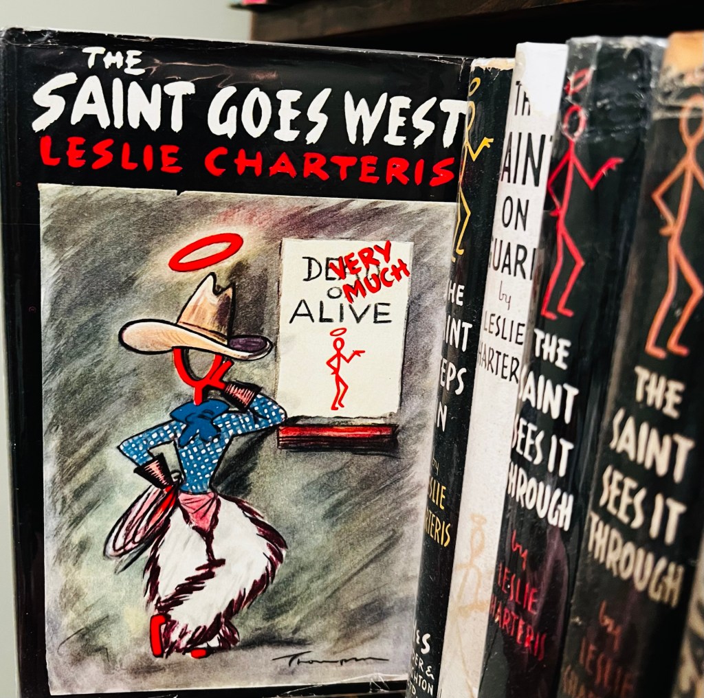 Two books later saw the release of The Saint Goes West, published in 1942 with Thompson once again the brilliant cover artist. These are the UK first editions and differ from the US editions and the cheaper UK Hodder and Stoughton ‘Yellow Jacket’ editions which were published through the late thirties and forties.