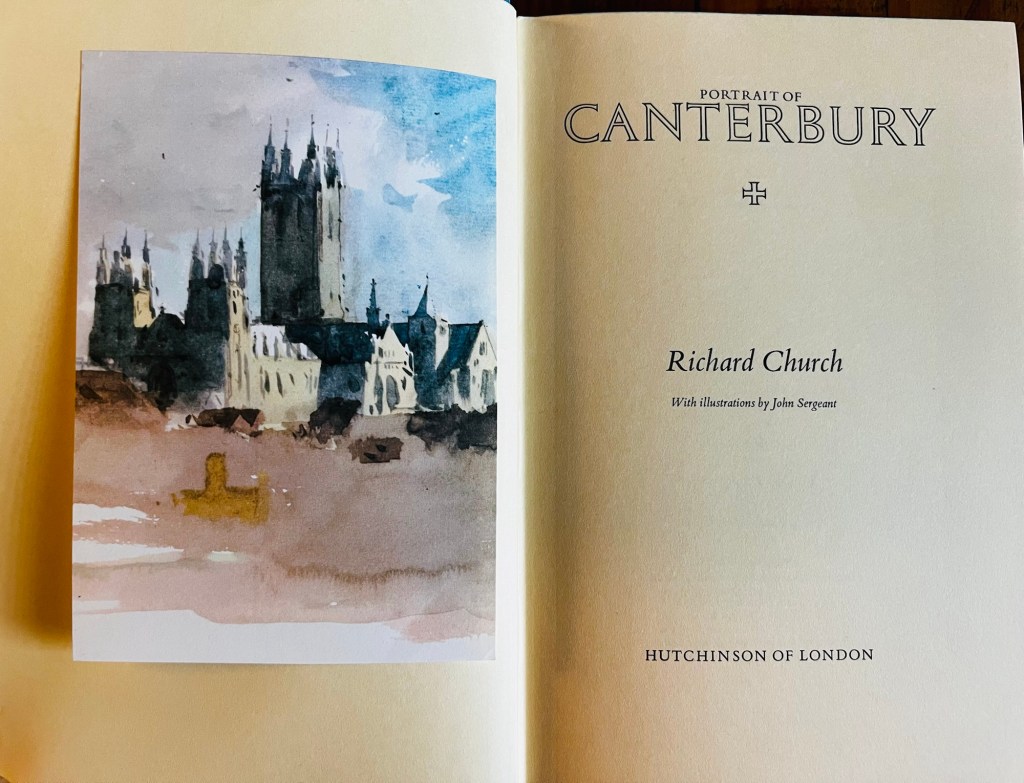 This was a great find recently; a 1968 first revised edition of Portrait of Canterbury by Richard Church. Originally published in 1953, this edition features beautiful artwork by John Sergeant throughout the book including the front cover of Canterbury Cathedral as seen from the south-west.