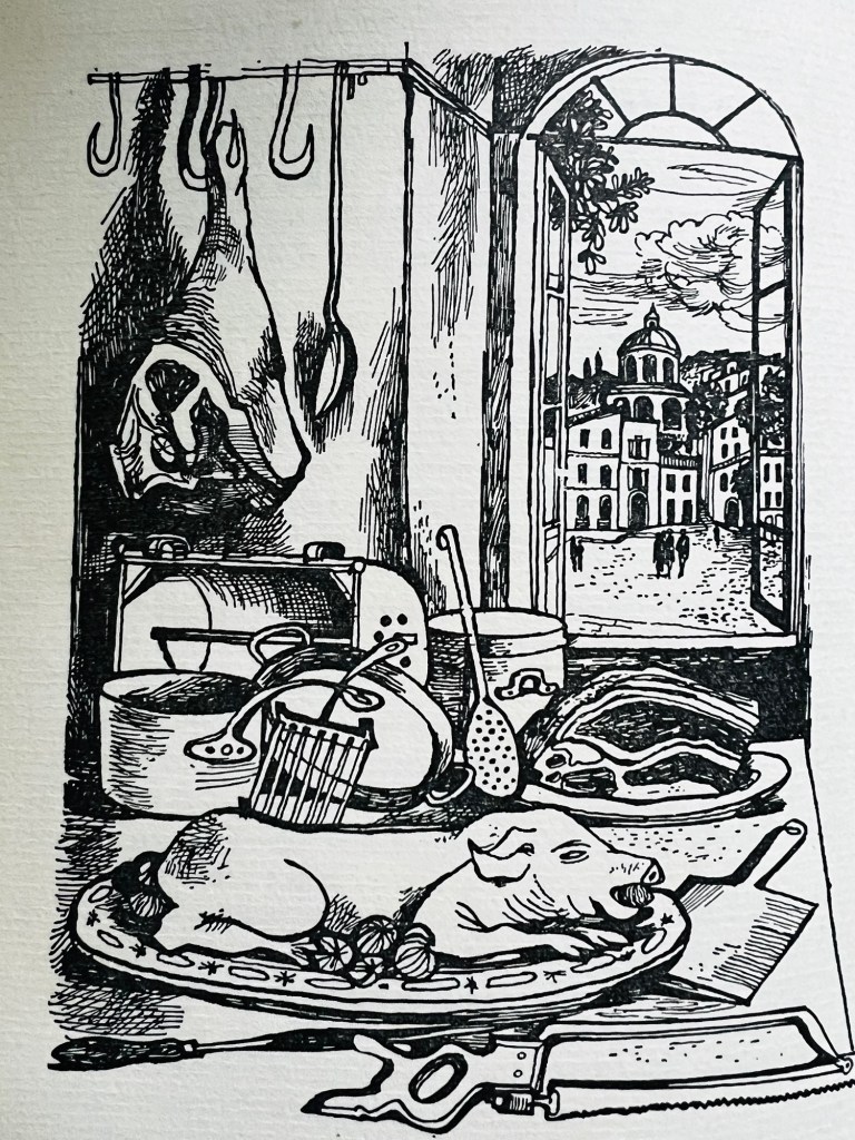 French Country Cooking was first published in 1951 by John Lehmann Ltd with cover artwork and illustrations by John Minton. It is important to remember the period in which this book was published, Britain was still recovering from a World War in which real poverty, food shortages and a battered infrastructure still existed. What David brought to the British household was a no-nonsense approach to household food management using the French method of utilising every scrap of the animal, fish or vegetable to create simple, nutritious food.