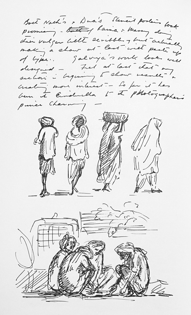 But as much as this is a somewhat enviable account of a life now in the distant past, it wasn’t as exotic as one might expect. He was short of money and eager to get funds wired over to him and the conditions he met with will have undoubtedly proved a challenge but for the most part he met it all with good humour apart from one encounter over a design he had made for a UNESCO pamphlet: “Terrible eye, ghastly ear. Frightfully English, only stopped it being used just in time”-I attempted to confess it was me who designed it but she (Mrs Wasi) refused to believe it so I gave up the attempt.’