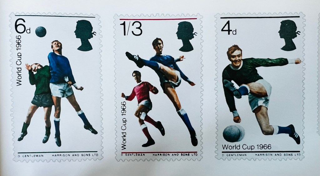 The designs for the 1966 World Cup stamp came via Gentleman Commissioning a young photographer called Peter Boyce to photograph a couple of amateur footballers with one being selected by the Post Office with the addition of England Winners thus becoming the first stamp to show living commoners.