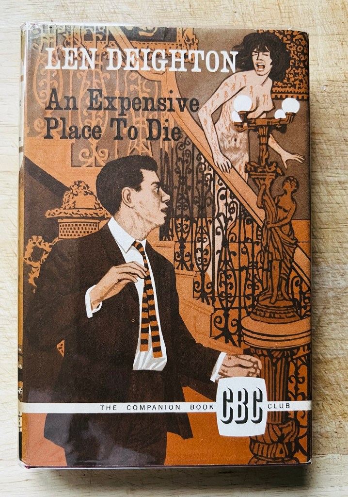 Deighton’s next book, separate from the previous series and once again first published by Jonathan Cape was An Expensive Place to Die. The original first edition with another very good photographic cover also contained a ‘secret document’ booklet, which, if you have one, is now very collectible. Sadly, but unsurprisingly, The Companion Book Club edition never had one. The cover, by Stewart Irwin, is very distinctive in style from the period. Published in the same year as the first edition, Irwin’s cover is somewhat risqué and perhaps indicative of the move away from the conservative attitudes Britain had up until the latter half of the sixties.